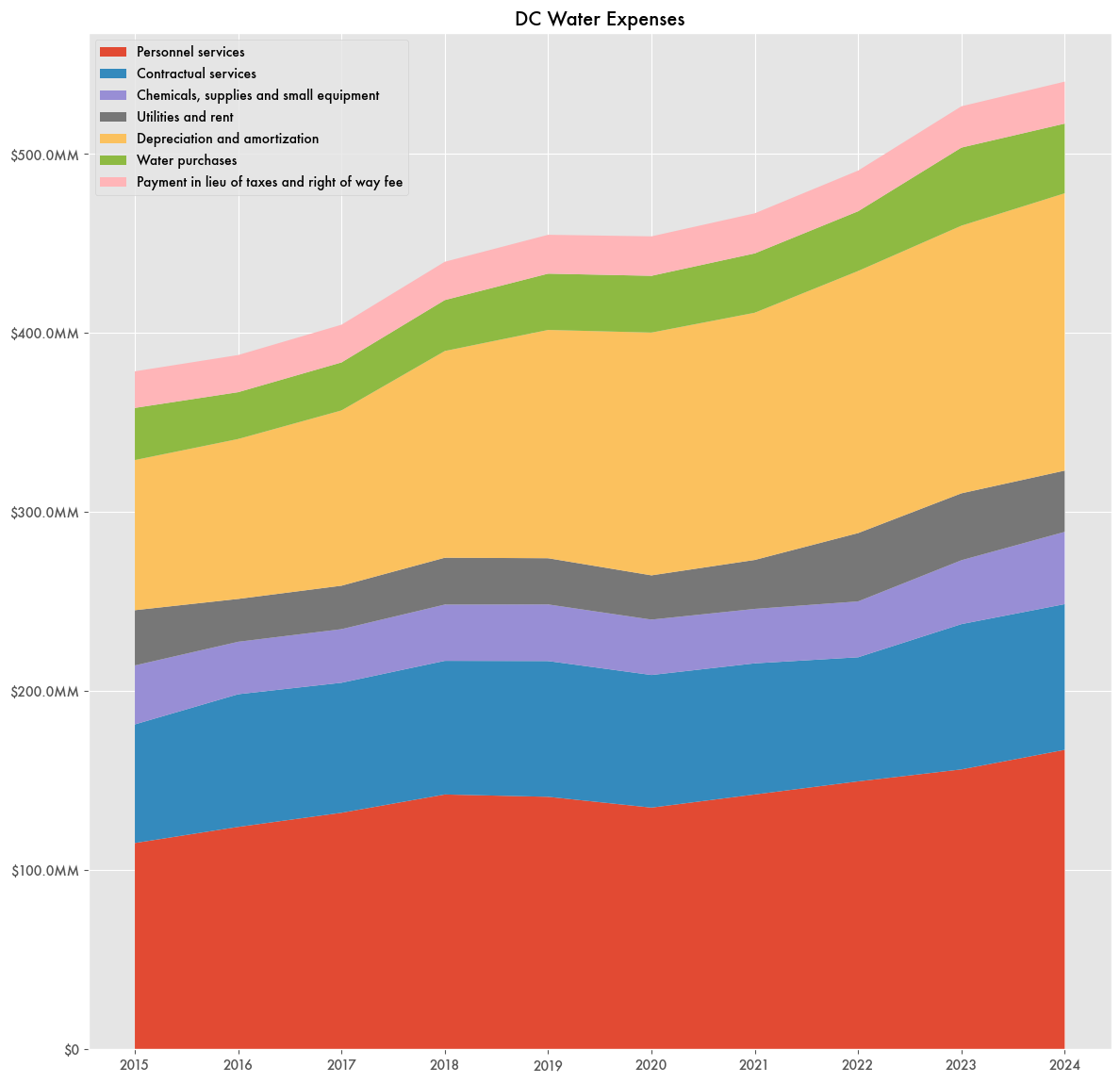 For example, the annual report for 2024 shows an operating revenue of $978 million based on water and sewer services for D.C. and just wastewater services for nearby Maryland and Virginia.