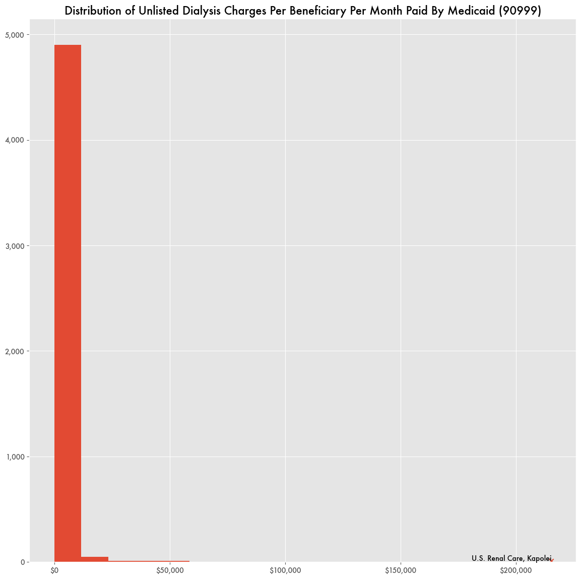 Miscellaneous dialysis charges (HCPCS: 9099) rarely top $3,000 per person per month, but somehow U.S. Renal Care in Kapolei, Hawaii was charging Medicaid over $200,000 per person.