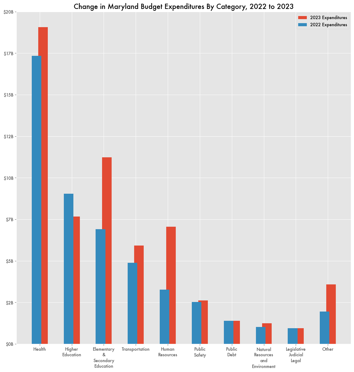 Not only were expenditures restated, but they were substantially higher than previous years, by $15 to $20 billion. In particular, additional billions were moved into Elementary & Secondary Education, Human Resources, and Health.