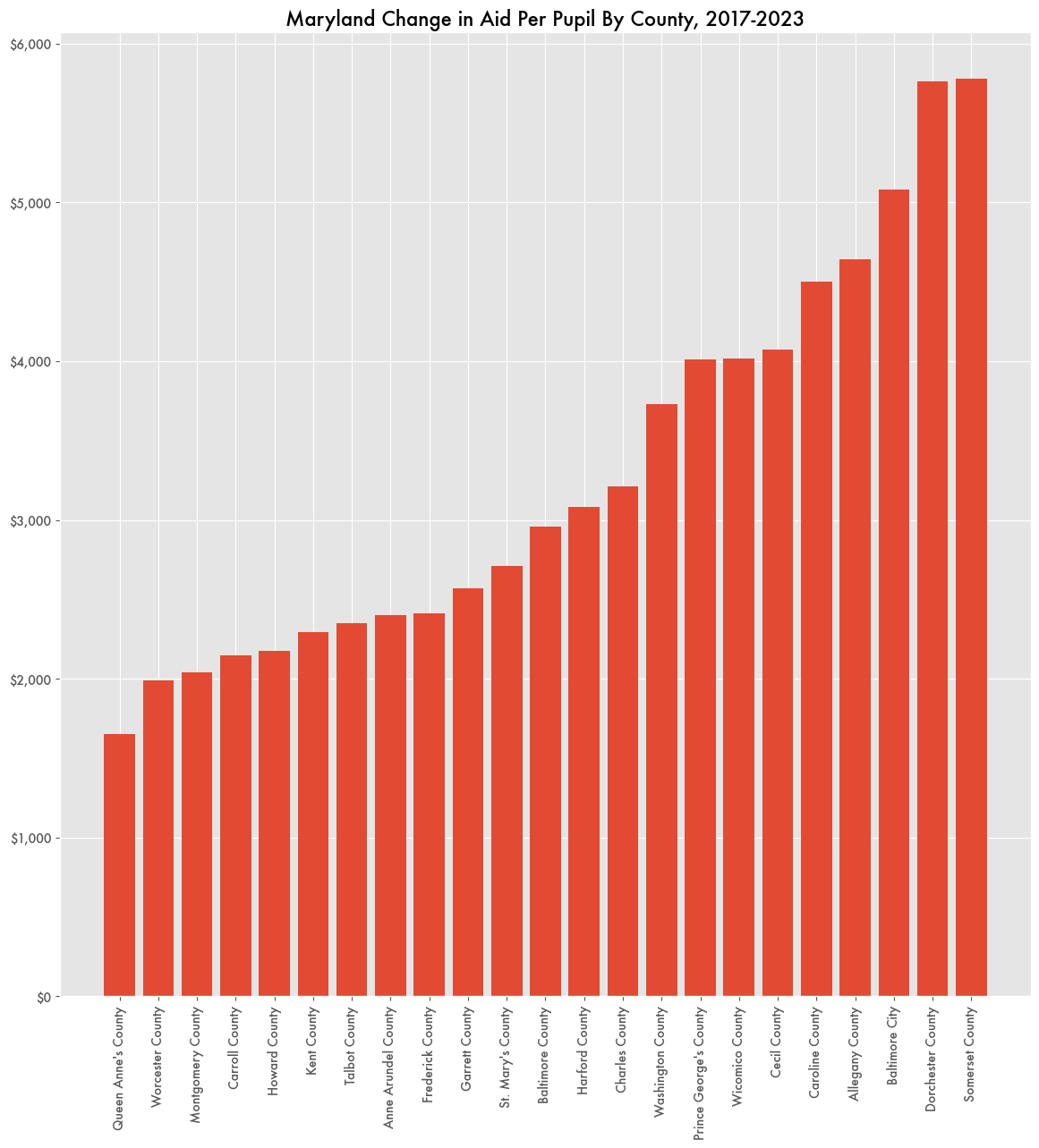 Frederick County was next with an additional $44 million, although that was largely because the county has seen a large upswing in population. On a per pupil basis, it was somewhat further towards the back.