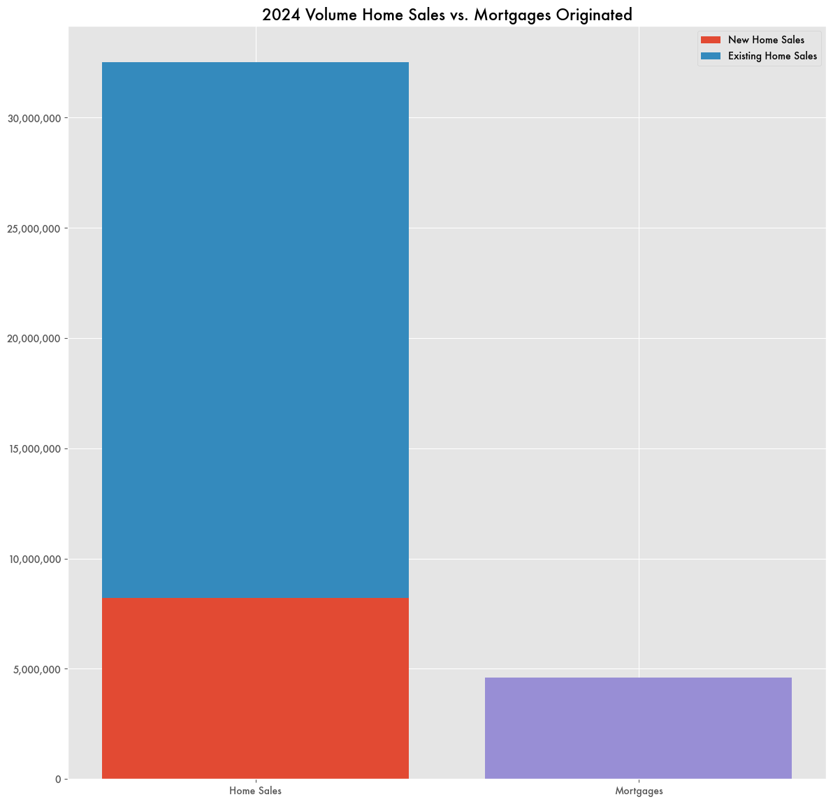 According to Consumer Finance Protection Bureau (CFPB) data, in 2024 there were almost 4.6 million mortgages originated, which includes the application, processing, underwriting, and actual funding of the cost to buy a home.